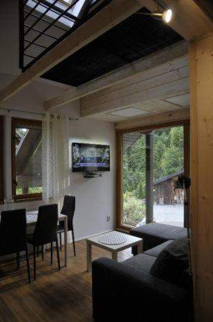 Zadbaliśmy o każdy detal – szybkie Wi-Fi, klimatyczne oświetlenie, miejsce na ognisko, leżaki na tarasie czy designerskie wnętrza łączące nowoczesność z górskim klimatem. Latem można wypocząć na świeżym powietrzu, a zimą ogrzać się przy kominku.