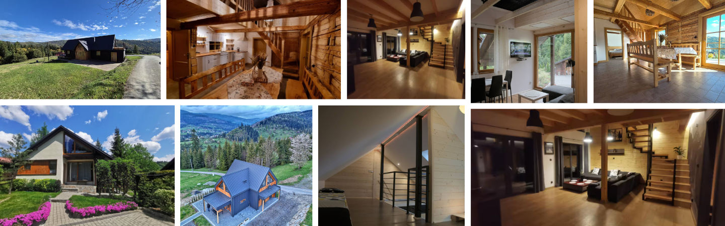 Nasze domy w Beskidach to idealne połączenie komfortu i natury. Na Gości czekają przestronne wnętrza, w pełni wyposażone kuchnie, przytulne sypialnie z dużymi, wygodnymi łóżkami oraz stylowe salony z miejscem do relaksu. W niektórych obiektach znajduje się również prywatne jacuzzi, które pozwala zanurzyć się w odprężeniu po dniu spędzonym na szlaku.