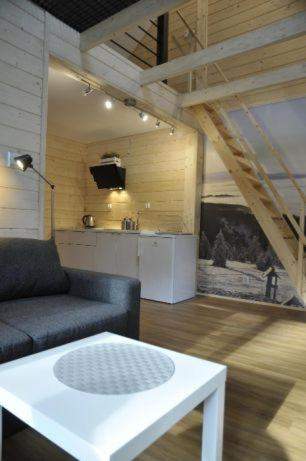 - Antresola : rozkładana sofa 140x200 przestrzeń otwarta