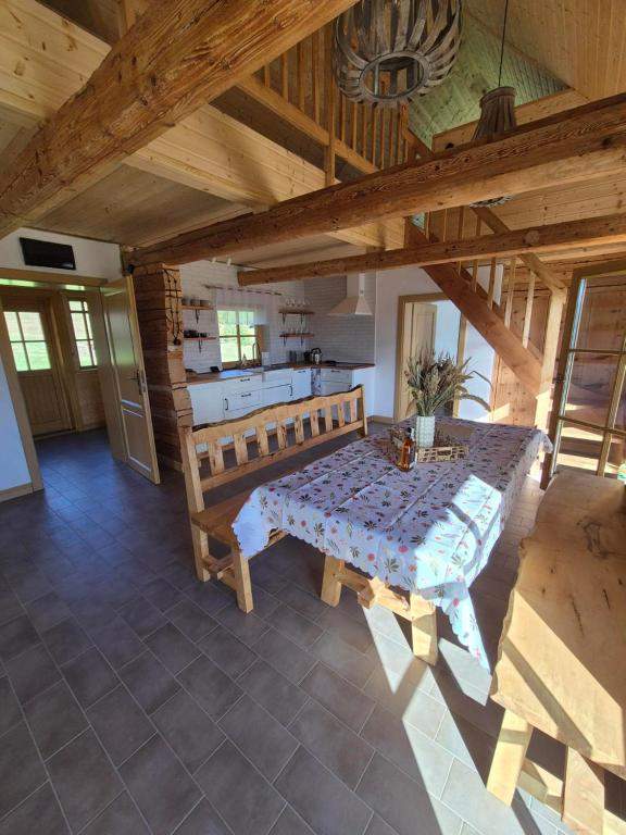 Nowoczesny domek z duszą, położony w spokojnej okolicy z pięknym widokiem na góry. Idealny dla rodzin i większych grup – pomieści nawet 12 osób. Goście chwalą przestronność, pełne wyposażenie oraz przytulny wystrój. Na miejscu dostępne są jacuzzi, miejsce na grilla oraz ekspres do kawy. Właściciel zapewnia świetny kontakt i pomoc w każdej sytuacji.
